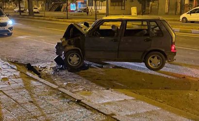 Mardin'in Midyat ilçesinde park halindeki bir hafif ticari araca çarpan otomobil sürücüsü yaralandı. Kaza anı, çevredeki güvenlik kameraları tarafından kaydedildi.