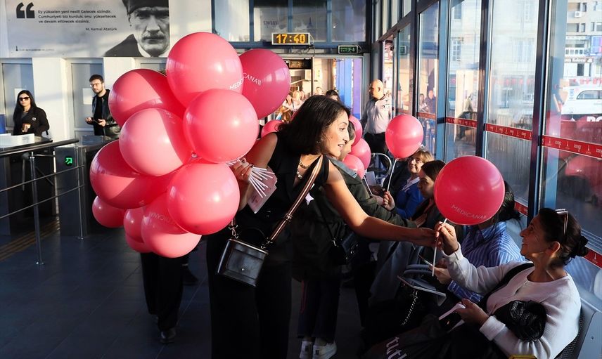 Vapurda bulunan kadın personelden gelen "Bir sonraki durak, mamografi" çağrısıyla dikkat çekilmeye çalışıldı.