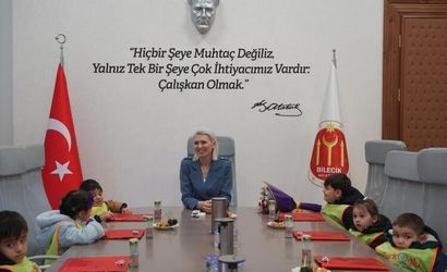 Bilecik Belediye Başkanı Melek Mızrak Subaşı, Özel Türkoğlu kreşinin sevimli öğrencileri ve öğretmenlerini belediye binasında ağırladı.