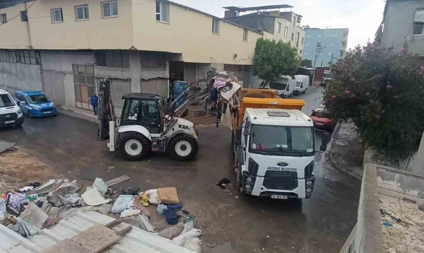Akdeniz Belediyesi’nden alınan bilgilere göre, bölge sakinlerinin sürekli şikayet ettiği bu evde yapılan incelemede, evin içinde ve bahçesinde büyük miktarda eski kıyafet, mobilya, halı, plastik eşyalar ve genel evsel atıklar bulundu. Belediyenin Zabıta Müdürlüğü ekipleri, bu birikimin hijyen ve güvenlik açısından ciddi tehlikeler oluşturduğunu rapor etti.