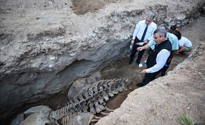 Mersin'de 2021'de sahile vurduktan sonra gömülen 14 metrelik Fin balinası iskeletinin bilimsel çalışmalarda kullanılmak üzere topraktan çıkarılma işlemi sürüyor. "Balinanın Sessizliği Bilime Dönüşüyor" projesi kapsamında gömüldüğü topraktaki kazı çalışmalarıyla büyük bölümü görünür hale gelen balina iskeletinin birleştirilmesi amaçlanıyor.