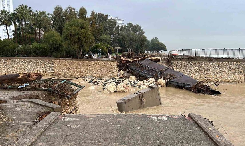 MERSİN'DE ETKİLİ OLAN YOĞUN YAĞIŞLARIN ARDINDAN KENT GENELİNDE SEL VE TAŞKINLAR YAŞANDI. MEZİTLİ İLÇESİ TECE MAHALLESİ'NDEKİ DEREDE BULUNAN YAYA KÖPRÜSÜ SELİN ETKİSİYLE YIKILIRKEN, SU BASAN ALANLAR DRONLA GÖRÜNTÜLENDİ, EKİPLER TEMİZLİK VE SU TAHLİYE ÇALIŞMALARINI ARALIKSIZ SÜRDÜRÜYOR.