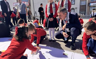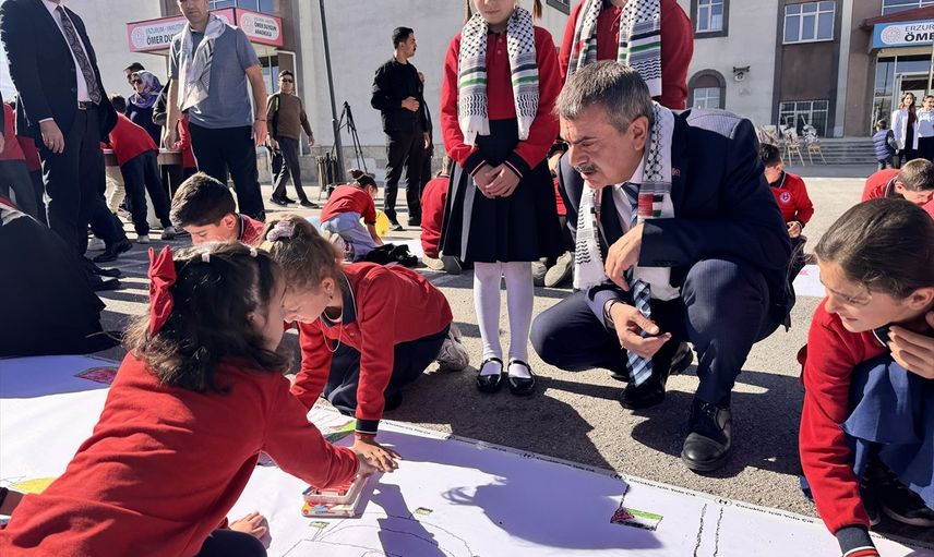 Milli Eğitim Bakanı Yusuf Tekin, bakanlıkça Türkiye'deki tüm okullarda bugün başlatılan "Filistin Farkındalık Etkinlikleri" kapsamında Erzurum'daki Ömer Duygun İlkokulu'na gelerek okul bahçesinde düzenlenen etkinliğe katıldı. Tekin, burada öğrencilerin Mescid-i Aksa ve Gazze konulu çizdikleri resim ve çalışmaları inceledi.