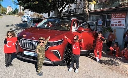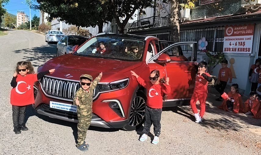Mersin’in Anamur ilçesinde, Yerli Malı Haftası etkinlikleri kapsamında minik öğrenciler yerli üretim Togg’u yakından görme fırsatı buldular.