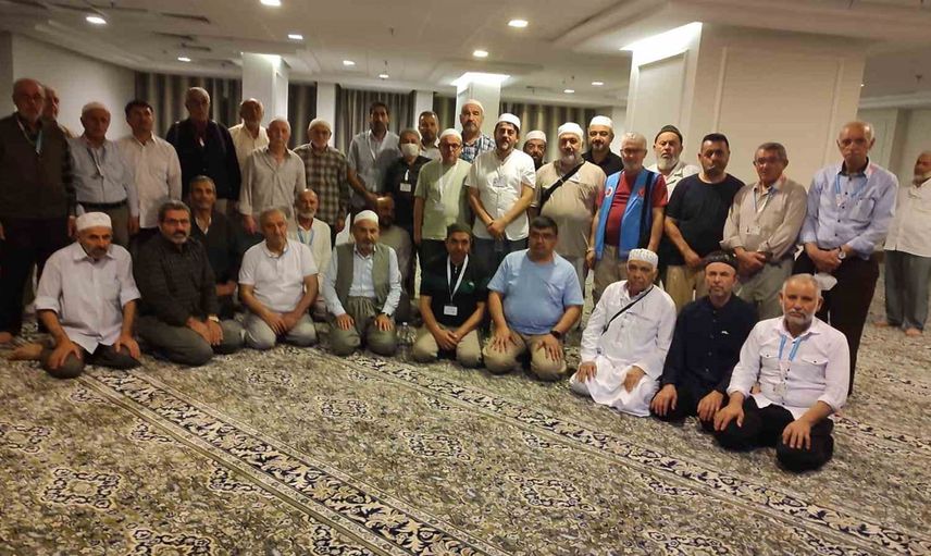 Umre ziyaretleri sırasında yatsı namazının ardından düzenlenen programa, çeşitli kafilelerin başkanları ve din görevlileri katıldı. Yemek masalarında gerçekleşen bu programda, katılımcılar Kur’an-ı Kerim tilavetleri ve ilahiler dinlediler.