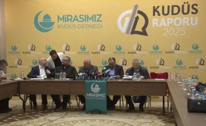 MİRASIMIZ KUDÜS DERNEĞİNİN "GENİŞLETİLMİŞ 2025 KUDÜS RAPORU" BAŞLIĞI İLE HAZIRLADIĞI KUDÜS RAPORUNU AÇIKLADI. 2025 YILINDA MESCİD-İ AKSA’DAKİ SOYKIRIMIN ÇARPICI VERİLERİNE DEĞİNEN DERNEK BAŞKANI MUHAMMET DEMİRCİ, İSRAİL İŞGAL DEVLETİ DAHA YOĞUN BİR SALDIRILARLA KUDÜS VE MESCİD-İ AKSA’NIN KİMLİĞİNİ, TARİHİNİ SİLMEYE ÇALIŞIYOR İFADELERİNİ KULLANDI.