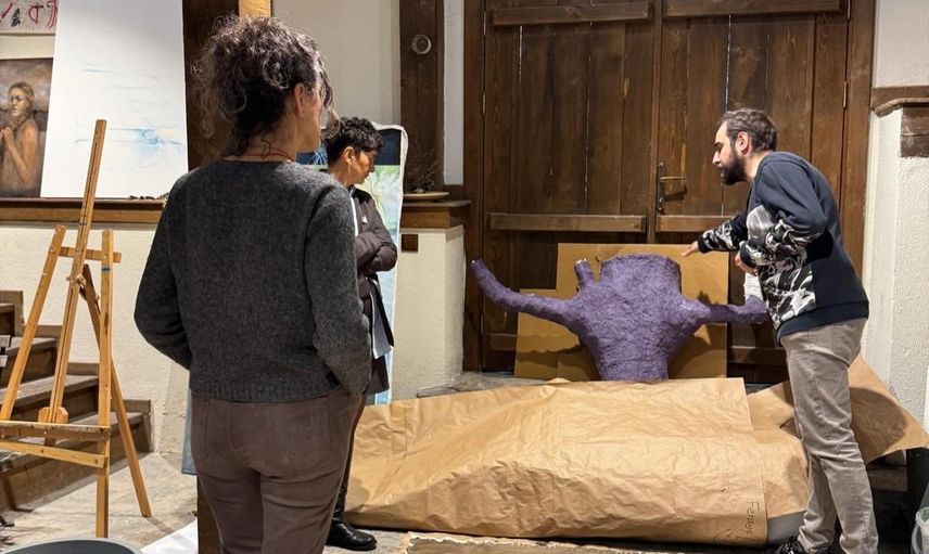 Bingöl, Misi’de bulunan ve burada üretimlerini sürdüren genç sanatçılarla bir araya gelerek atölye ziyaretleri gerçekleştirdi. Ziyaret sırasında genç sanatçıların devam eden projelerini inceleyen Bingöl, kendi sanat pratiğinden örnekler sunarak üretim süreçlerine dair tecrübelerini paylaştı.