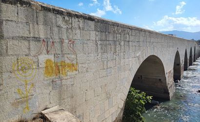 Adana’nın Yüreğir ilçesinde bulunan Misis Köprüsü, Anadolu'nun bilinen ilk Roma köprüsü olarak tarihi öneme sahip. Ancak, son günlerde yaşanan bir olay, bu tarihi yapının görünümünü olumsuz etkiledi. Sprey boya ile yapılan yazılama, köprünün taş işçiliğine zarar verdi.