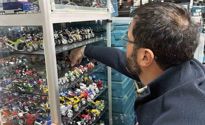 Düzce'de hırdavat sektöründe faaliyet gösteren Aydın Çetinkaya, 30 yıl boyunca biriktirdiği motosiklet maketlerini iş yerinde sergiliyor.
