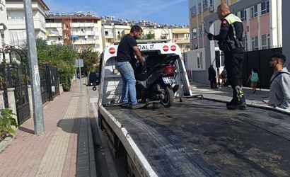 Antalya'nın Manavgat ilçesindeki 75. Yıl İlköğretim Okulu'nun yetkilileri, tehlikeli bir durumla karşılaşınca harekete geçti. Okul önünde belirlenen abartılı egzozlu ve plakasız motosiklet, okul yönetiminin ihbarı üzerine trafik ekipleri tarafından durduruldu.