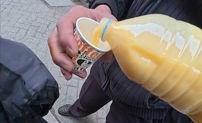ESKİŞEHİR’DE YEMEK AĞITIMI YAPAN BİR KURYE MOTOSİKLETİNE YERLEŞTİRDİĞİ 1 ŞİŞE BOZAYI BARDAKLARA KOYARAK VATANDAŞLARA SOĞUK KIŞ GÜNÜNDE DAĞITTI.