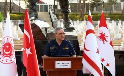 Milli Savunma Bakanlığı (MSB) Basın ve Halkla İlişkiler Müşaviri ve Bakanlık Sözcüsü Tuğamiral Zeki Aktürk, 20 Temmuz 1974'te gerçekleştirilen Kıbrıs Barış Harekatı'nda vatan ve millet uğruna şehit olan kahraman Mehmetçiğin ve mücahitlerin yan yana yattığı Kuzey Kıbrıs Türk Cumhuriyeti'nde bulunan Boğazköy Şehitliği'nde düzenlenen haftalık basın bilgilendirme toplantısında konuştu.