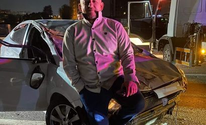 BURSA'NIN MUDANYA İLÇESİNDE KAZADAN BURNU BİLE KANAMADAN KURTULAN ARAÇ SÜRÜCÜSÜ, HURDAYA DÖNEN OTOMOBİLİN ÖNÜNDE POZ VERDİ