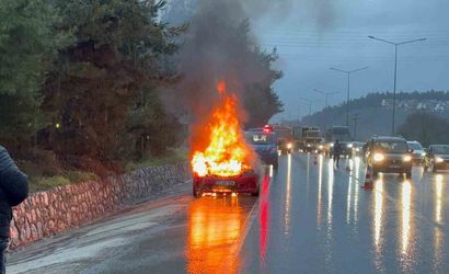 Mudanya istikametinden Bursa yönüne seyir eden otomobilin motorunda arıza meydana geldi. Sürücü, arıza nedeniyle otomobili sağa çekerek durdurdu. Ancak kısa sürede aracın alevler içinde kalması, sürücü ve çevredekilerde panik yarattı.