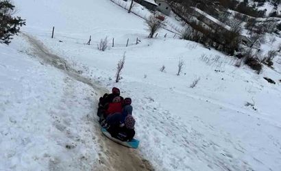 Yoğun kar yağışının ardından bazı bölgelerde kar kalınlığı 60 santimetreyi buldu. Karın etkisinin azalmaya başlamasıyla, Mudurnu'nun köy yamaçları, eğlenceli anlara ev sahipliği yaptı. Bölge kadınları, geleneksel yöntemleri kullanarak çuvalın içine saman doldurup, karlı yamaçlardan kayarak keyifli dakikalar geçirdi.