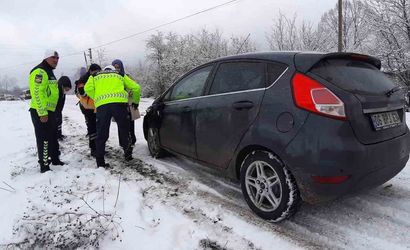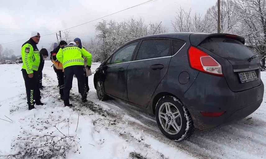 Bolu’nun Mudurnu ilçesinde meydana gelen kazada, sağlık personelini taşıyan bir otomobil, kaygan zemin nedeniyle virajı alamayarak karşı yönden gelen başka bir araçla çarpıştı.
