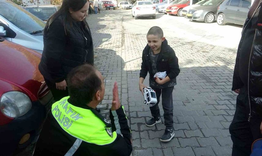 MUĞLA’DA YÜREKLERİ ISITAN ANLAR TRAFİK ŞUBE MÜDÜRÜ HAÇAN’DAN ÖZEL ÇOCUĞA ANLAMLI HEDİYE
