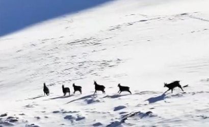 Karlı zirvelerde hareket eden şamualar, doğa tutkunları ve fotoğraf meraklıları için keşfedilmeyi bekleyen bir hazinedir. Drone ile kaydedilen görüntüler, bu muhteşem canlıların karla kaplı kayalıklar arasında besin arama anlarını yansıtıyor.