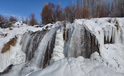 Van’ın önemli doğal güzelliklerinden biri olan Muradiye Şelalesi, soğuk havaların etkisiyle donarak adeta beyaz bir gelinlik giymiştir. Sıfırın altına düşen sıcaklıklarla birlikte şelaleden akan sular buz tutmuş ve kartpostallık görüntüler oluşturmuştur.