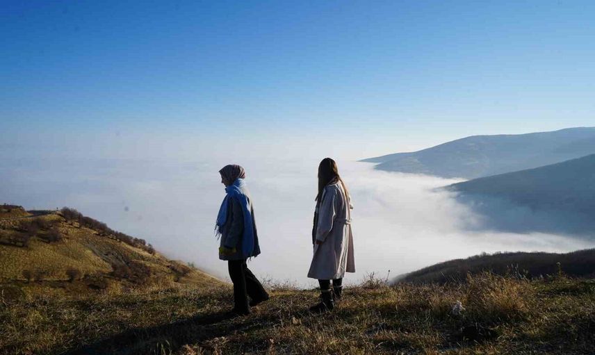 Soğuk hava ile etkisini artıran sis, drone ile kaydedilen görüntülerde olağanüstü bir panoramayı gözler önüne serdi. Ova, sis bulutlarıyla bir deniz gibi kaplanmış görünüyor.