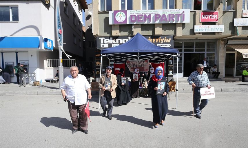 Muş'ta çocukları terör örgütü PKK tarafından kaçırılan aileler, DEM Parti İl Başkanlığı binası önündeki eylemlerine devam etti.