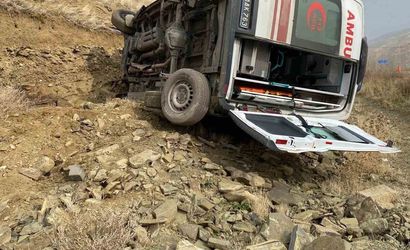 Muş'ta, hastaneye dönerken devrilen bir ambulansın sonucunda 3 kişi yaralandı. Olay, Korkut-Bulanık karayolu üzerindeki Karakale köyü yakınlarında meydana geldi.
