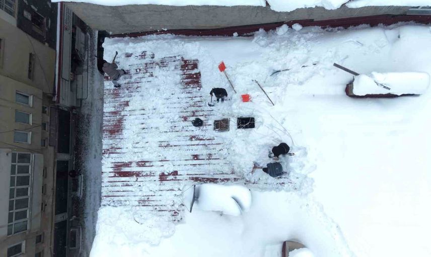Çatı temizliği yapan işçiler, kalın kar birikintileri ile mücadele ederken aynı zamanda hayatlarını riske atıyor. Zaman zaman buzlanma ve kaygan yüzey nedeniyle tehlikeli anlar yaşayan işçiler, güvenlik önlemlerini artırarak çalışıyor.