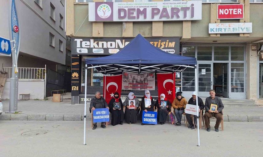 Muş’ta, çocukları terör örgütü PKK tarafından kaçırılan aileler, DEM Parti İl Başkanlığı önünde evlat nöbetine devam ediyor. Bu hafta, eylemlerinin 222’nci haftasında buluşan aileler, yine çocuklarına 'teslim olun' çağrısında bulundu.