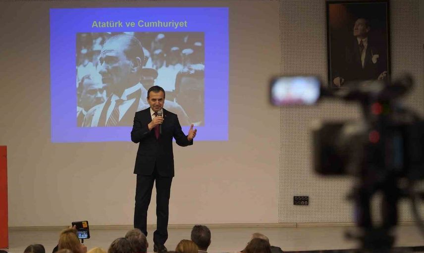 Konuşmaların ardından Naim Babüroğlu, ‘Atatürk ve Cumhuriyet’ başlıklı söyleşisini gerçekleştirdi. Türkiye Cumhuriyeti’nin kuruluş felsefesi ile Atatürk’ün liderlik özellikleri üzerine bilgi veren Babüroğlu, etkinliğin sonunda katılımcılara kitaplarını imzaladı ve plaket takdim edildi.