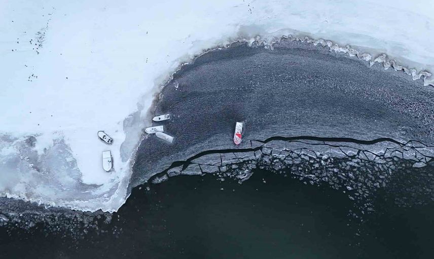 Balıkçılıkla geçimini sağlayan köy sakinleri, göl tamamen donmadan önce son av için yoğun çaba harcıyor. Balıkçılar, birlikte çalışarak buzları kırarak teknelerini göle indirmeye çalışıyor. Soğuk havanın avlanmayı her geçen gün daha zor hale getirdiğini belirten balıkçılar, önümüzdeki günlerde göl yüzeyinin tamamen donma tehlikesi ile karşı karşıya kaldığını ifade etti.