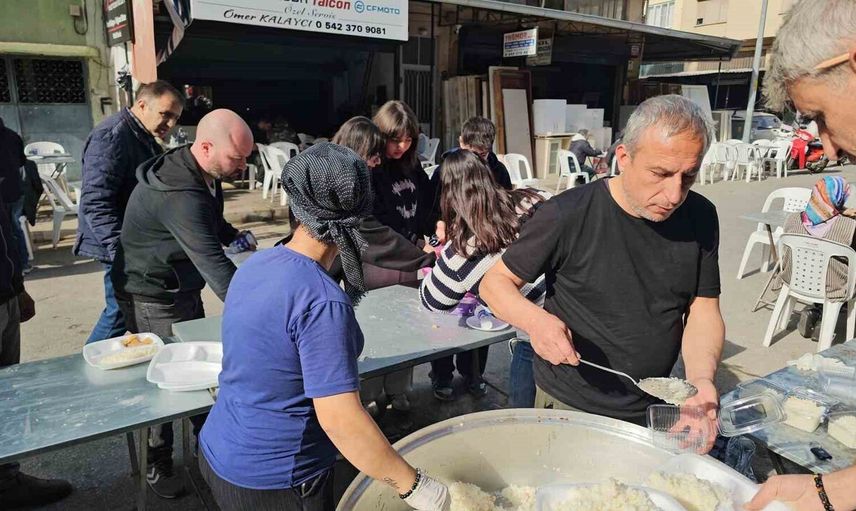 Aydın’ın Nazilli ilçesinde bulunan sanayi esnafı, imece usulü düzenledikleri hayır etkinliği ile topluma örnek oldu. Aralarında topladıkları bağışlarla katılımcılara pilav, tavuk, helva ve ayran ikram eden esnaf, geleneksel yardımlaşma örneği sergiledi.