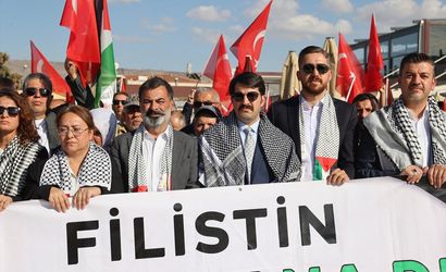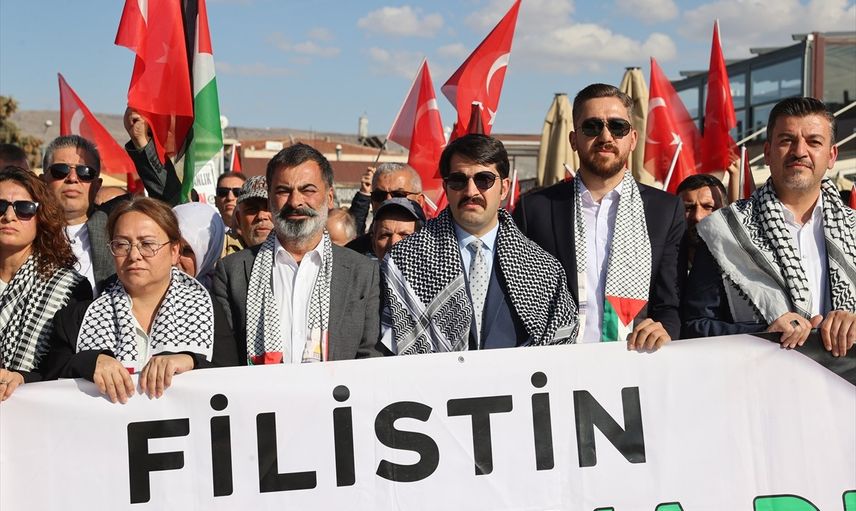 Nevşehir'in Ürgüp ilçesinde, İsrail'in Gazze'ye yönelik saldırılarına tepki amacıyla yürüyüş düzenlendi. Nevşehir Filistin'e Destek Platformu tarafından düzenlenen etkinlik kapsamında katılımcılar ellerindeki Türk ve Filistin bayrakları ile Ürgüp İlçe Mezarlığı'ndan Cumhuriyet Meydanı'na kadar yürüdü.