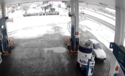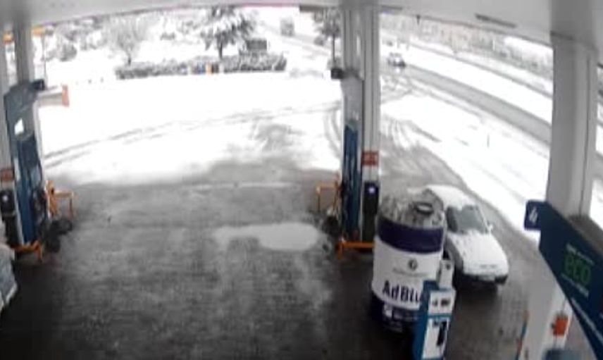 Bu talihsiz kaza, bir işyerinin güvenlik kamerası tarafından kaydedildi ve o anlar saniye saniye görüntülendi.