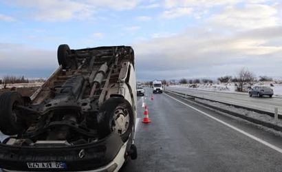 Nevşehir'de seyir halindeyken kontrolden çıkan bir minibüs, orta refüje çarparak takla attı ve karşı şeride düştü. Kazanın ardından araç sürücüsü yaralandı.