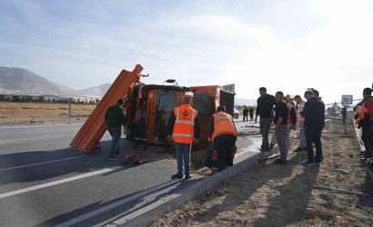 Edinilen bilgilere göre, Karayolları 64. Şube Şefliği’ne ait 38 KC 913 plakalı kamyon, sürücüsü H.A. ile seyir halindeyken aniden damperinin açılması sonucu kontrolden çıktı. Çarpmanın şiddetiyle kamyon devrilirken, EDS direği de yola devrildi.