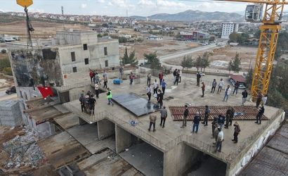 Gaziantep'in Nurdağı ilçesinde, rezerv alanında yapımı süren konut projesinin son kalıbı, davul zurna eşliğinde yerine konuldu.