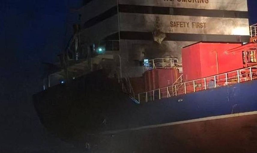 ODESSA (İHA) - UKRAYNA’NIN ODESSA LİMANI YAKINLARINDA 12 OCAK TARİHİNDE TAHIL ALMAK ÜZERE YAKLAŞAN TÜRK ŞİRKETİNE AİT PANAMA BANDIRALI "ATA VOYAGER" ADLI GEMİNİN RUSYA’NIN İNSANSIZ HAVA SALDIRISI ARACI (İHA) SALDIRISINDA HEDEF ALINDIĞI ANLARA İLİŞKİN GÖRÜNTÜLER ORTAYA ÇIKTI.
