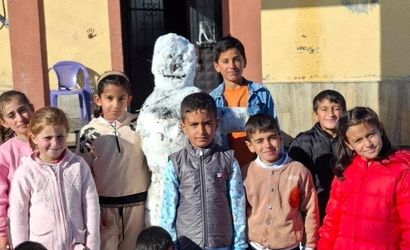 Öğrencilerin kardan yaptıkları kardan adamın etrafında toplanan Okul Müdürü Fatih Biçer, çocukların sevincine ortak olarak onlarla birlikte keyifli anlar yaşadı ve bu anları ölümsüzleştirmek için fotoğraflar çekti.