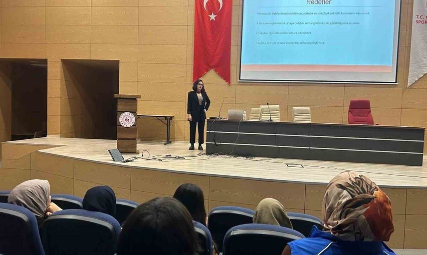 AYDIN GENÇLİK VE SPOR İL MÜDÜRLÜĞÜ TARAFINDAN DÜZENLENEN BİLİNÇLENDİRME KONFERANSINDA, ÖĞRENCİLER KADINA YÖNELİK ŞİDDET VE ÖNLEME YOLLARI KONUSUNDA BİLGİLENDİRİLDİ.