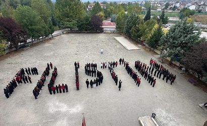 Bilecik'in Osmaneli ilçesinde öğrenciler, Gazze'ye insani yardım ulaştırmak için yola çıkan ve İsrail'in saldırısına uğrayan Küresel Sumud Filosu'na Filistin koreografisiyle destek verdi.