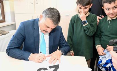 Öğrenciler, Vali Çiftçi'nin okulu ziyaret etmesi üzerine bir araya gelerek forma imzalatma konusunda sıraya girdiler. Eğitim faaliyetleri ve okul durumu hakkında detaylı bilgiler alan Vali, 1’inci ve 4’üncü sınıf öğrencileriyle de sıcak bir sohbet gerçekleştirdi.