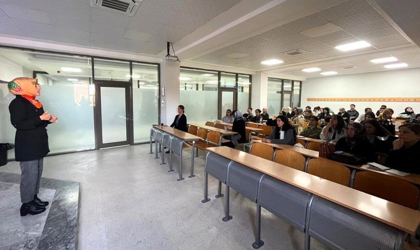 Etkinlikte sunum yapan Öğretim Görevlisi Cemile Çulcuoğlu, yükseköğretimdeki kalite güvencesi sisteminin temel bileşenlerini anlattı. Çulcuoğlu, öğrenci geri bildirimlerinin program geliştirme süreçlerinde ne denli önemli olduğuna dikkat çekti.
