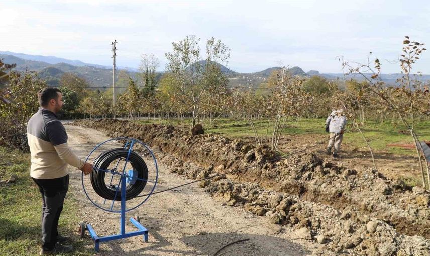 Ordu Büyükşehir Belediyesi, fındıkta verimliliği artırmak ve kuraklıkla başa çıkmak için Fındık Verimliliği Projesi (FINVER) kapsamında damlama sulama sistemi kuruyor.