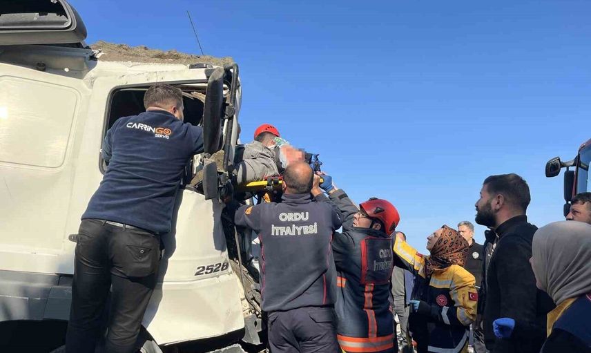 Ordu’nun Ünye ilçesinde bir tırla çarpışan kamyonun sürücüsü yaralanarak araçta sıkıştı. Olay, Nuriye Mahallesi'nde gerçekleşti ve kurtarma çalışmaları yoğun bir şekilde sürdürüldü.