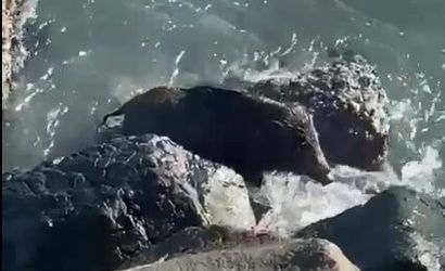 ORDU’NUN PERŞEMBE İLÇESİNDE DENİZE GİREN BİR YABAN DOMUZU, KIYIYA YAKIN BÖLGEDE VATANDAŞLAR TARAFINDAN GÖRÜNTÜLENDİ.