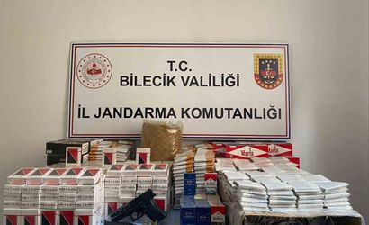 Bilecik’in Osmaneli ilçesinde yapılan jandarma operasyonunda kaçak tütün ve ruhsatsız tabanca ele geçirildi.