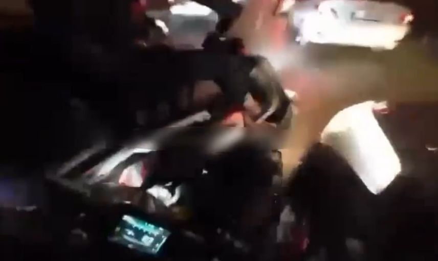 ARAÇLARIN ARASINDAN HIZLA GİDEN MOTOSİKLETLİYE ARKASINDAN GELEN MOTOSİKLETLİ BÖYLE ÇARPTI