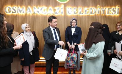 Osmangazi Belediyesi Meslek Edindirme Kursları (OSMEK) kapsamında düzenlenen okuma yazma kursunu başarıyla tamamlayan 26 kadın, mezuniyet coşkusunu yaşadı. Sertifikalarını Osmangazi Belediye Başkanı Erkan Aydın'dan alan kadınların mutluluğu ise görülmeye değerdi.