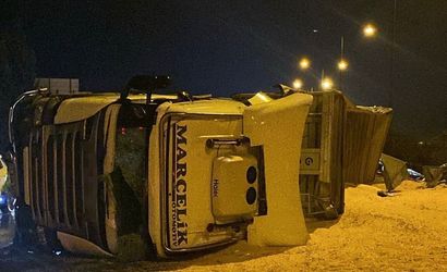 Osmaniye'nin Bahçe ilçesinde, yağmur sebebiyle kayganlaşan yolda mısır yüklü bir kamyon devrildi. Kaza sonucunda kamyon sürücüsü yaralandı.