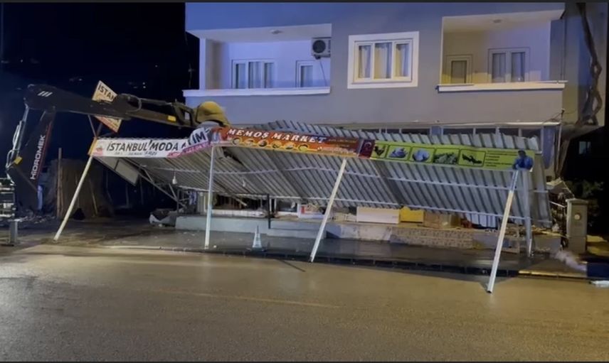 İhbar üzerine, belediye ekipleri hızla olay yerine sevk edildi. Ekipler, çevrede güvenlik önlemleri alarak tehlike arz eden çatıyı kontrollü bir şekilde yıktı.
